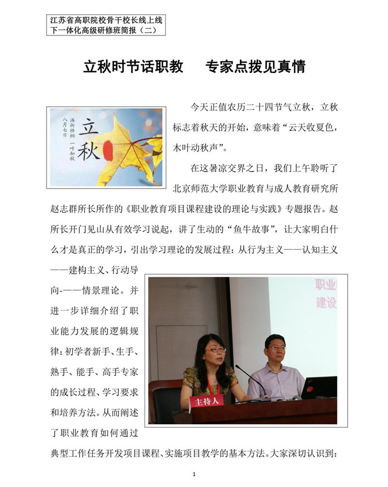 立秋时节话职教 专家点拨见真情——江苏省高职院校骨干校长线上线下一体化高级研修班简报(二)
